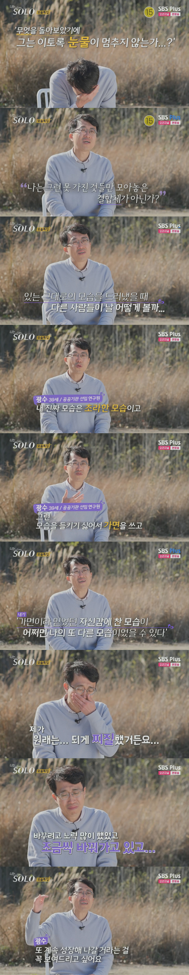 그리고 "나는 다른 사람들에 (비해) 못 가진 것들을..."이라며 서러움에 또다시 울컥한 광수는 한참을 흐느끼다 "나는 못 가졌지만 다른 사람들은 가진 것들... 나는 그런 '못 가진 것들만 모아놓은 결합체가 아닌가?'라는 생각이 들 때도 있었고. 그런 있는 그대로의 모습을 드러냈을 때 다른 사람들이 날 어떻게 볼까..."라고 토로했다.