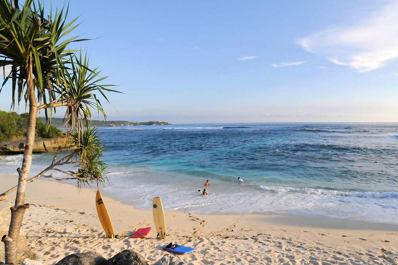 누사 두아는 발리의 가장 독점적 인 리조트 지역 중 하나이며 해변은 일반적으로 조용하고 잘 유지됩니다. 이 남동쪽 해안선을 따라 있는 물은 평온합니다.길게 뻗은 누사두아 암초가 바다에서 끊임없이 솟아오르는 큰 물결을 깨뜨리기 때문입니다.