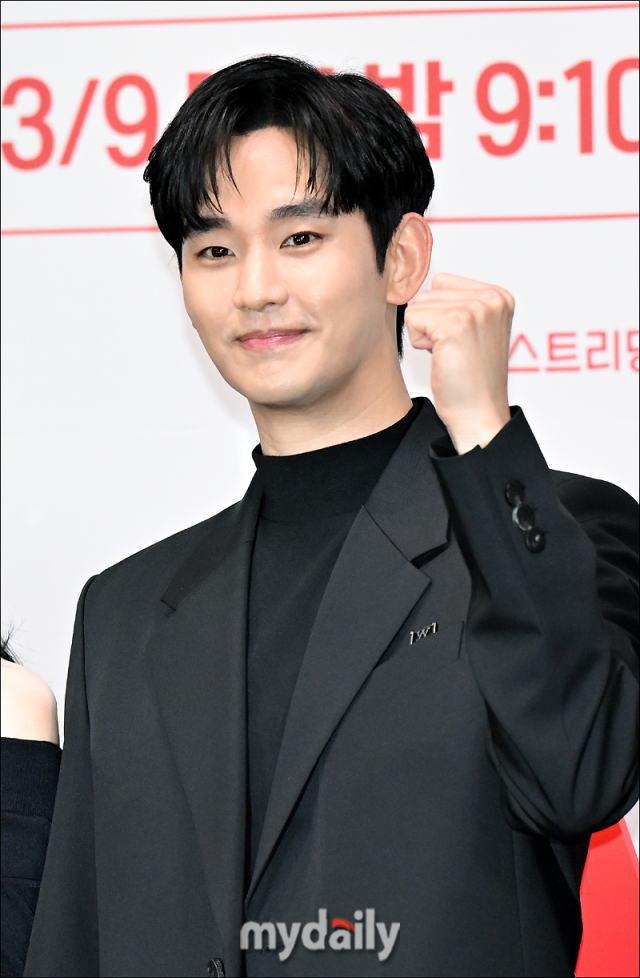 김수현은 현재 케이블채널 tvN '눈물의 여왕'에 출연 중이다. '눈물의 여왕'은 퀸즈 그룹 재벌 3세, 백화점의 여왕 홍해인(김지원)과 용두리 이장 아들이자 슈퍼마켓 왕자 백현우(김수현)의 부부생활 도중 닥친 위기와 이를 통해 다시금 싹튼 사랑을 다룬 이야기로, 4회 만에 13%의 시청률을 달성하며 인기를 얻고 있다.