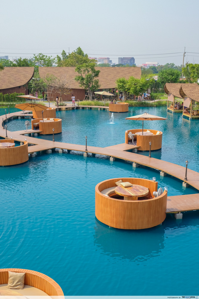 이 카페에는 빈백이 가득한 복층 구조로 많은 사람들이 앉아 방콕의 바쁜 일상에서 벗어나 휴식을 취할 수 있으며, 나콘파톰의 논과 푸른 바다의 인상적인 파노라마 뷰도 즐길 수 있습니다.