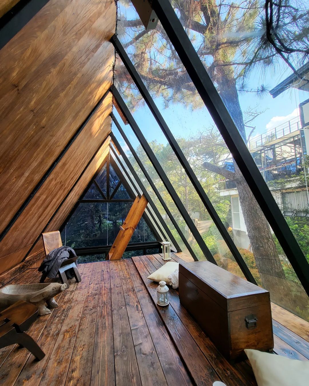 튜더 인 더 파인즈에는 파인 콘과 파인 니들 두 개의 유리 트리하우스가 서로 마주보고 있습니다(5,800원부터 1박, 미화 103.06달러). 트리하우스는 지상 30피트 높이에 위치해 있으며, 홈스테이 본관과 연결되는 구름다리를 통해 이동할 수 있습니다.