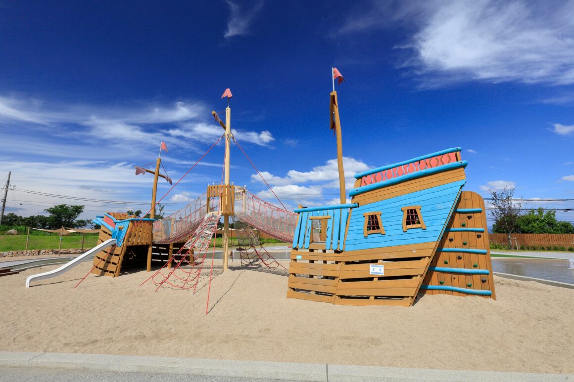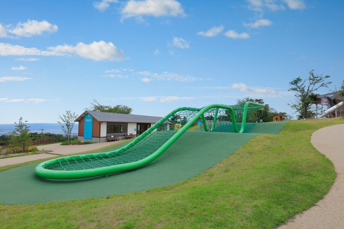 이코마 산조 공원의 가장 큰 특징 중 하나는 어린이와 가족이 다양한 야외 활동을 즐길 수 있도록 설계된 개방형 공간인 '플레이 피크 이타다키'입니다.