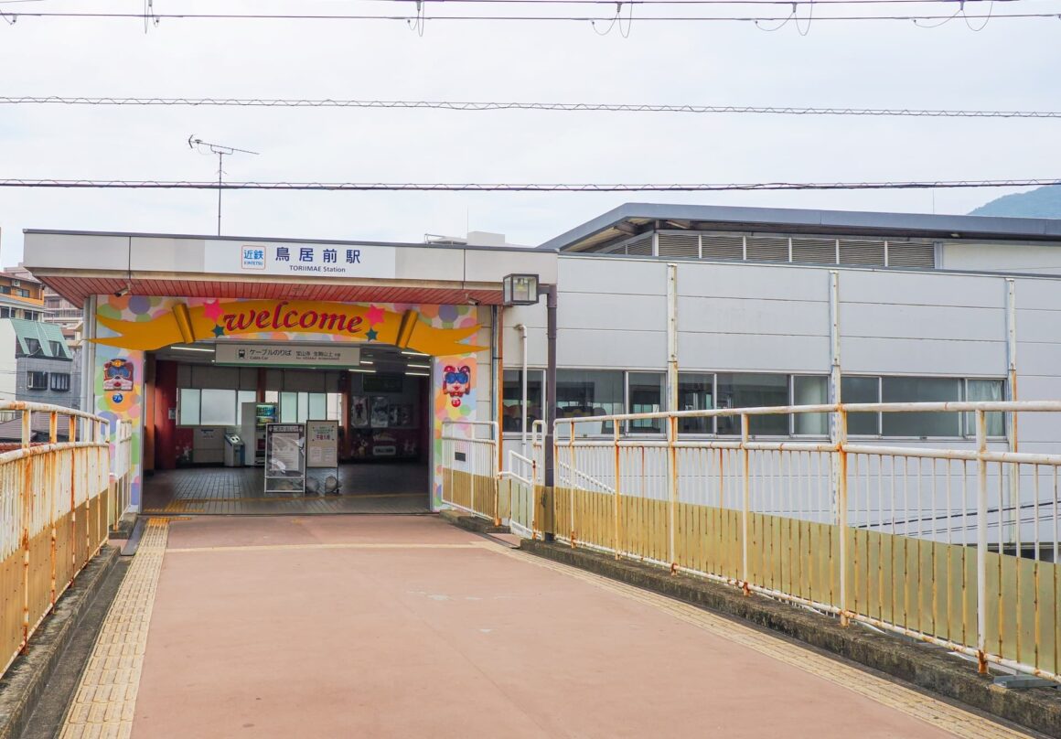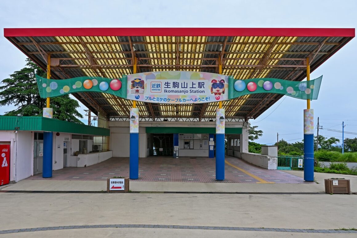 이코마역에 도착한 후 도리이마에역까지 걸어가면 이코마 산조 유원지에서 가장 가까운 역인 이코마 산조역으로 가는 케이블카를 탈 수 있습니다.