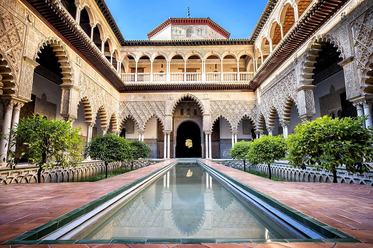 레알 알카사르는 7세기에 지어진 유네스코에 등재된 궁전입니다. 이 상징적인 랜드마크는 무데하르, 고딕, 르네상스 건축 양식이 혼합되어 있어 스페인에서 가장 아름다운 성 중 하나로 꼽힙니다.