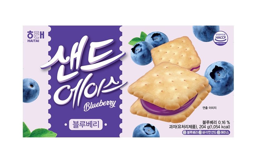 해태제과는 블루베리 색을 담은 ‘샌드에이스 블루베리’를 출시했다. 블루베리 잼이 아닌 블루베리 크림을 활용한 제품으로, 봉지를 뜯으면 바로 풍기는 상큼하고 진한 블루베리의 향이 특징이다. 두툼한 과자 사이로 블루베리의 풍미를 느낄 수 있는 제품으로, 기존 라인업의 제품의 특장점을 그대로 가지고 있는 신메뉴라 할 수 있다. 패키지 하나에 12봉지의 샌드에이스가 들었으며, 가격은 3,980원이다.