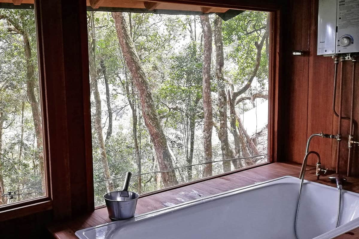소박한 숙박의 욕실은 일반적으로 여행의 하이라이트는 아니지만,이 휴양지에는 정글을 마주하는 욕조가 있으므로 자연에서 휴식을 취할 수 있습니다. 또한 첫날과 마지막 날에는 저녁 식사와 아침 식사,두 번째 날에는 세 끼 식사가 제공됩니다.