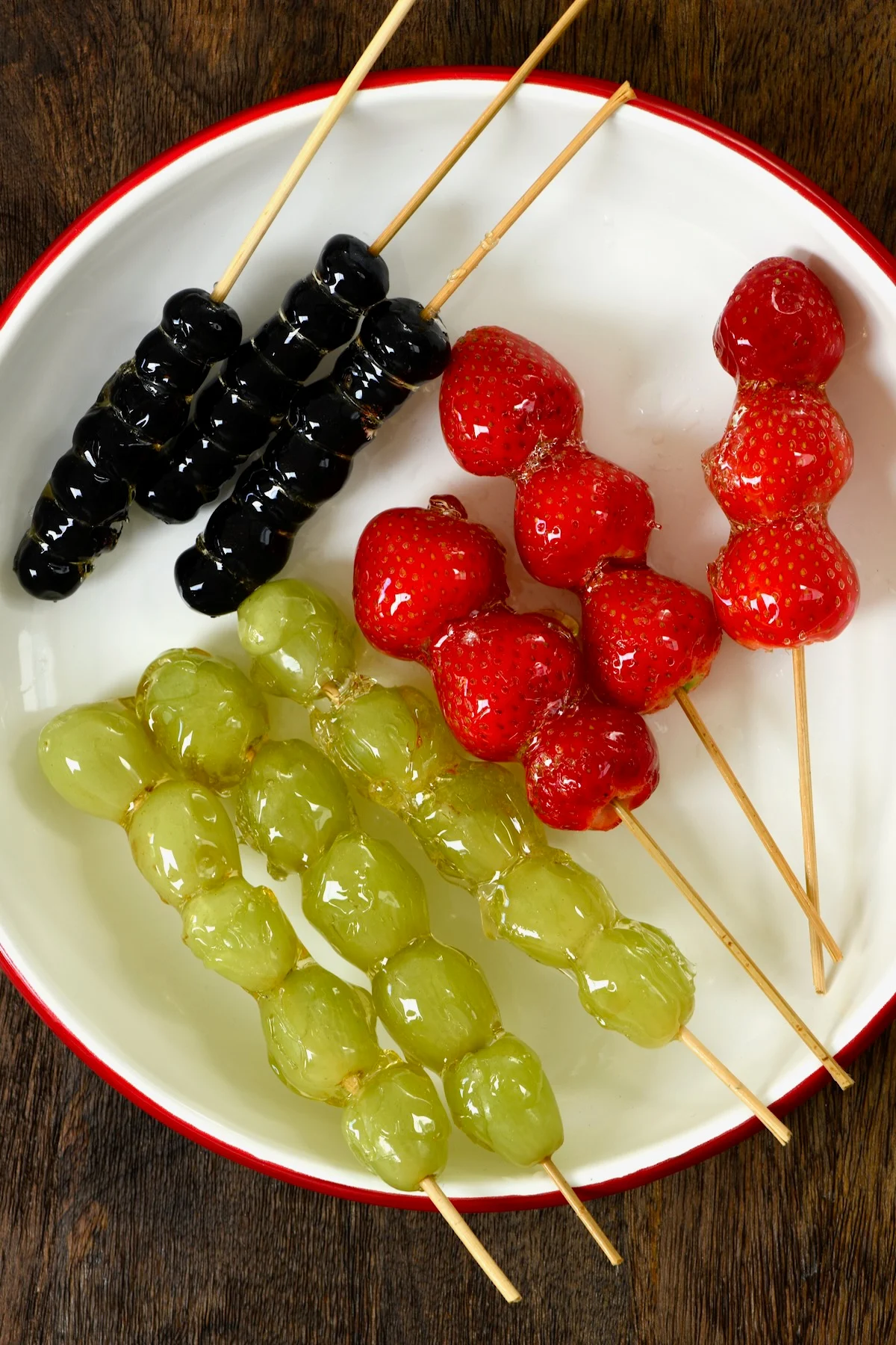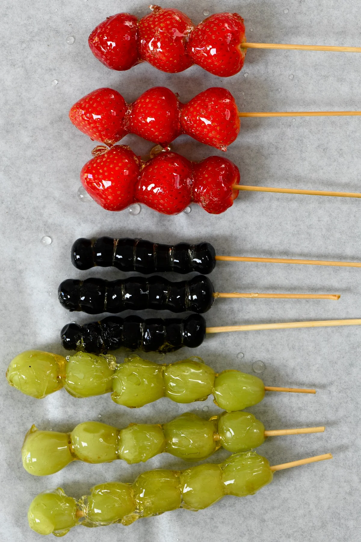 예,이 사탕 딸기 레시피를 다른 과일에도 사용할 수 있습니다. 블루 베리,키위(두꺼운 조각 또는 반/분기 달로 자른 것),산사 나무 열매,금귤,체리,사과,감귤,파인애플 또는 체리 토마토에서 좋아하는 것을 선택하십시오. 이 모든 것이 놀라운 바삭 바삭한 설탕에 절인 과일 간식을 만들 것입니다.