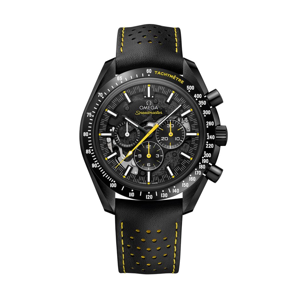 2024 년 오메가의 첫 번째 시계는 아폴로 8 호 비행 50 주년을 기념하기 위해 처음 발사된 2018 스피드마스터 다크 사이드 오브 더 문의 리업이다. 이 새로운 임무를 위해,하지만,얼굴과 케이스백에 레이저 컷 문스케이프 릴리프에 대한 다시 선명하게 정의가있다-뒷면의 절반은 우주 비행사 만 볼 어두운 비트 인,따라서 이름-노란색 디테일과 9 시에 작은 손 시계 토성 브이 모양의 티타늄으로 만든.